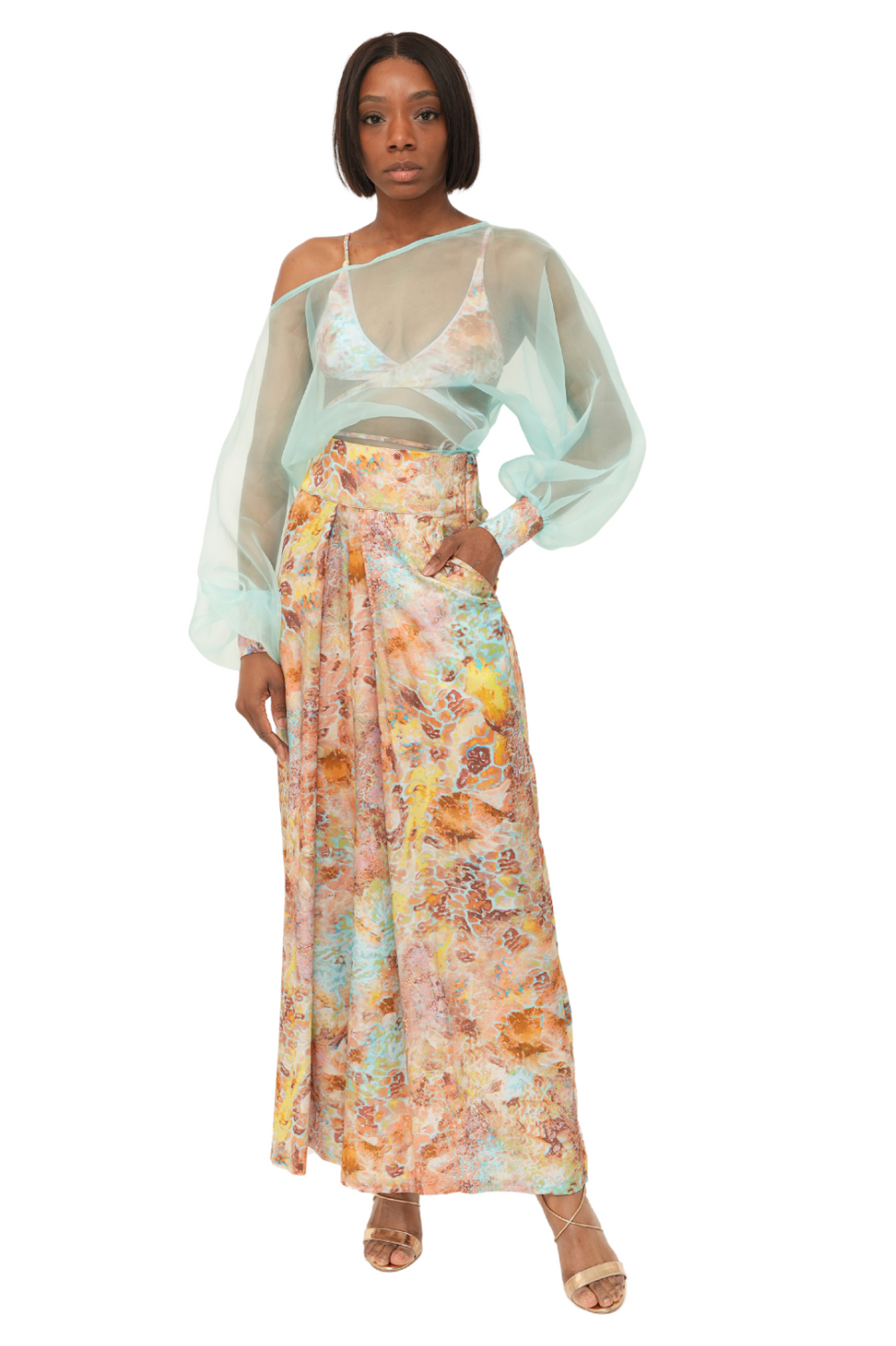 The Lalya Jumpsuit features voluminous sleeves, wide legs, and a drawstring waist for a structured minimalist design.