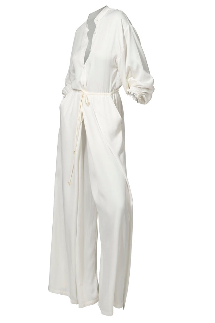 The Lalya Jumpsuit is our most generously cut jumpsuit to date. The voluminous sleeve and wide  legs come together with a drawstring  waist, giving the minimalist design structure and shape.